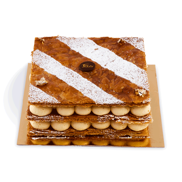 Pâte feuilletée croustillante pur beurre, mousse vanille.